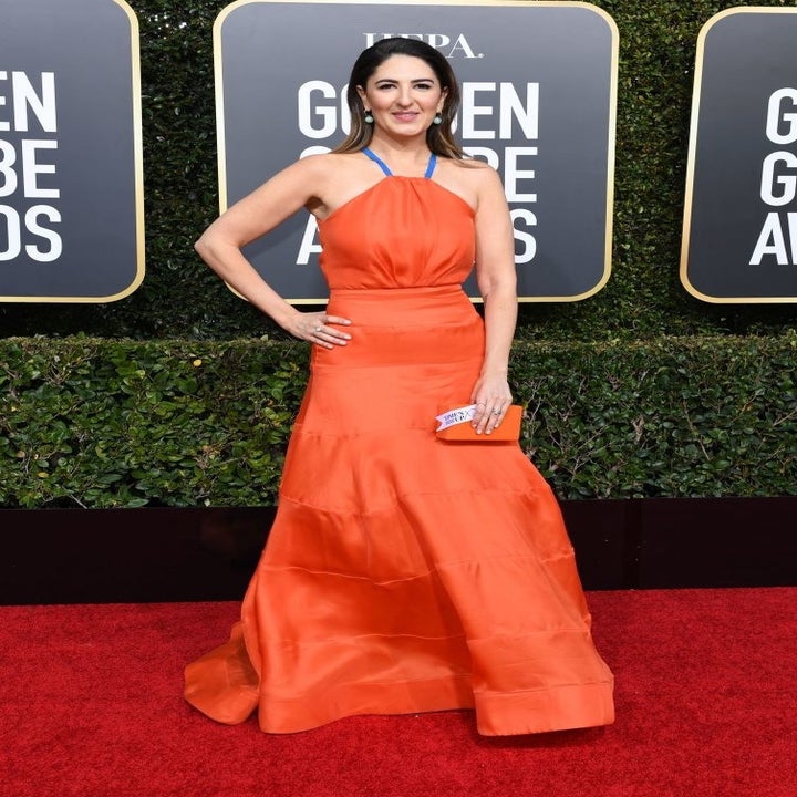 Carden sostiene en sus manos una nota que dije “Time’s up” el nombre del movimiento que nació en Hollywood en contra del abuso sexual contra las mujeres.